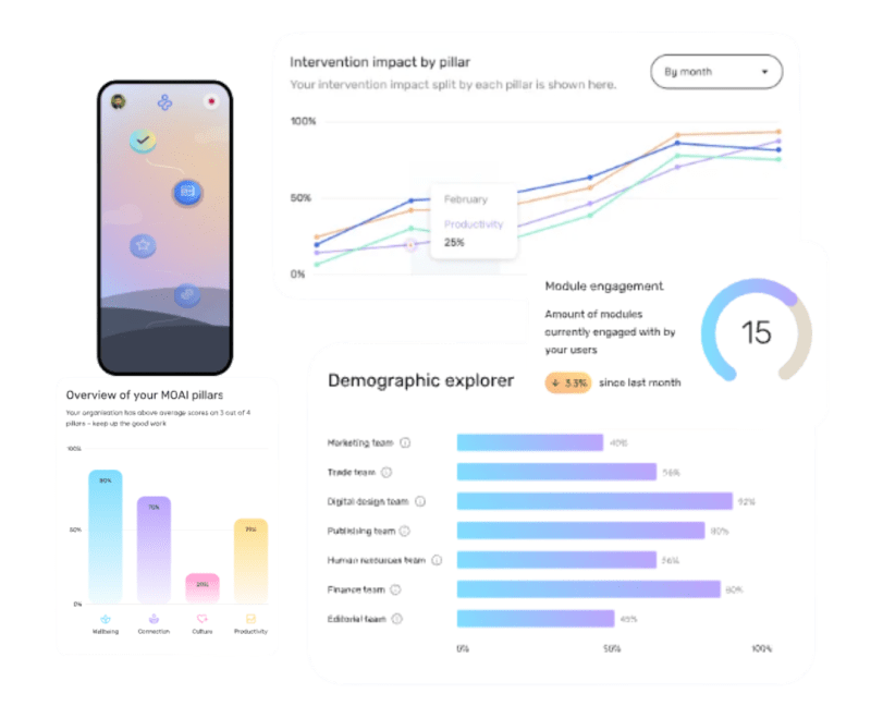 MOAI Pulse Check goes beyond traditional wellbeing measures to help you understand how your people are doing and, if they are struggling, why that may be.